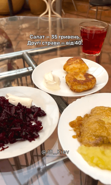 “Найдорожча страва, що я бачила, 80 грн. Мій повноцінний обід — 245 грн. Це місце працює лише в будні з 8 до 15:30”, — наголосила жінка.